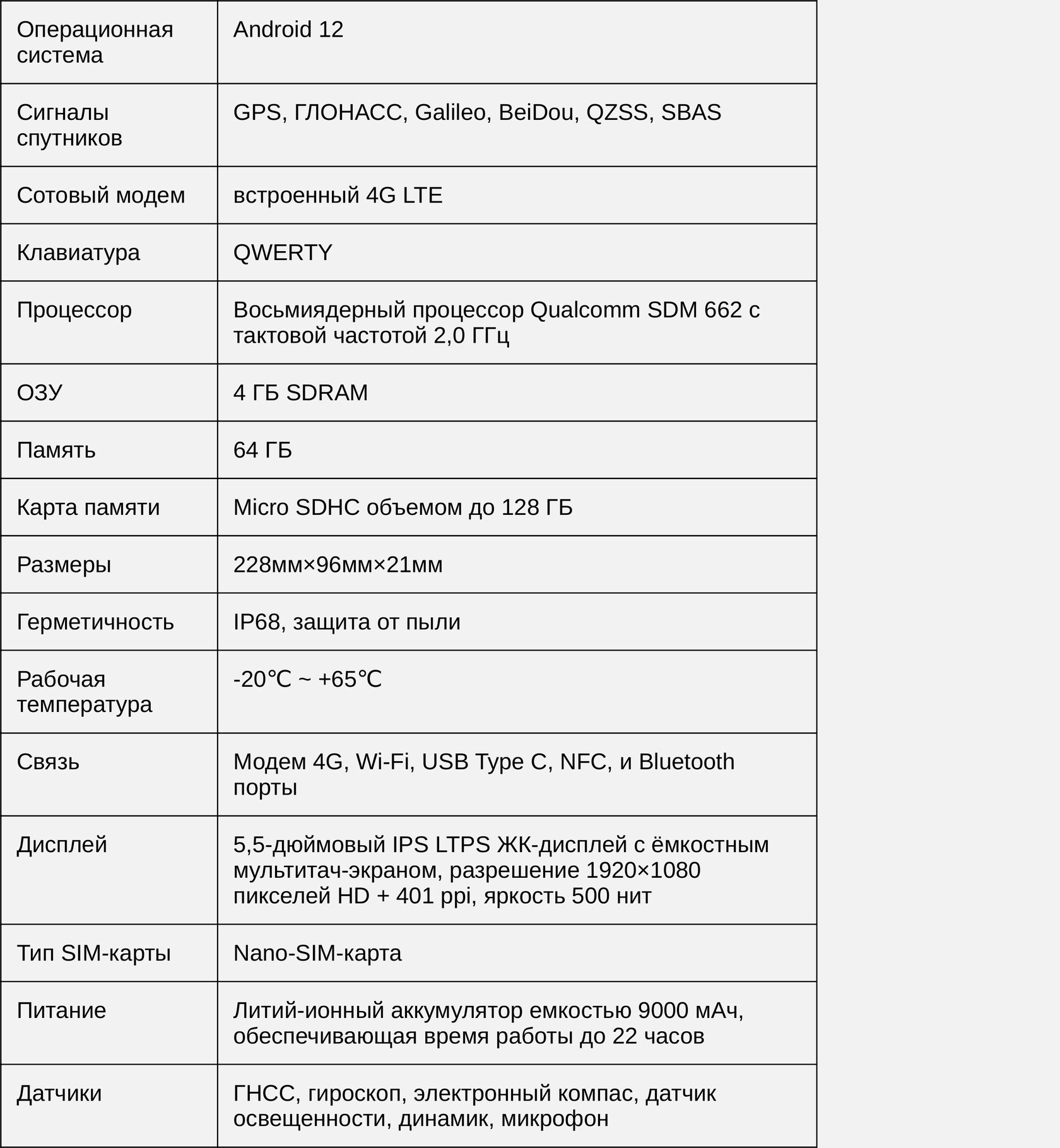 Защищенный корпус: Степень защиты IP68, устойчивость к пыли и влаге, возможность работы в экстремальных температурах от -20°C до +65°C и падениям с высоты до 1,2 м.
