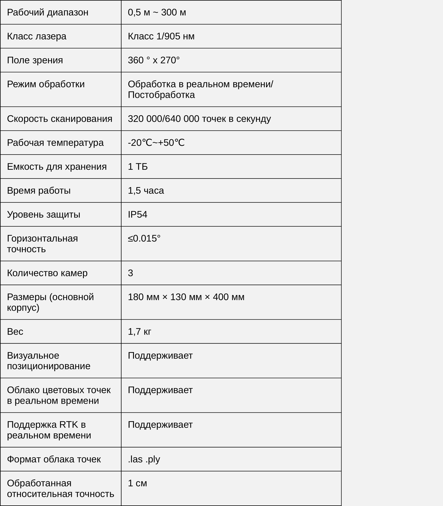 Высокая точность: LiDAR с рабочим диапазоном 0,5 м — 300 м и точностью до 2 cм, идеально подходящий для широкого спектра задач.