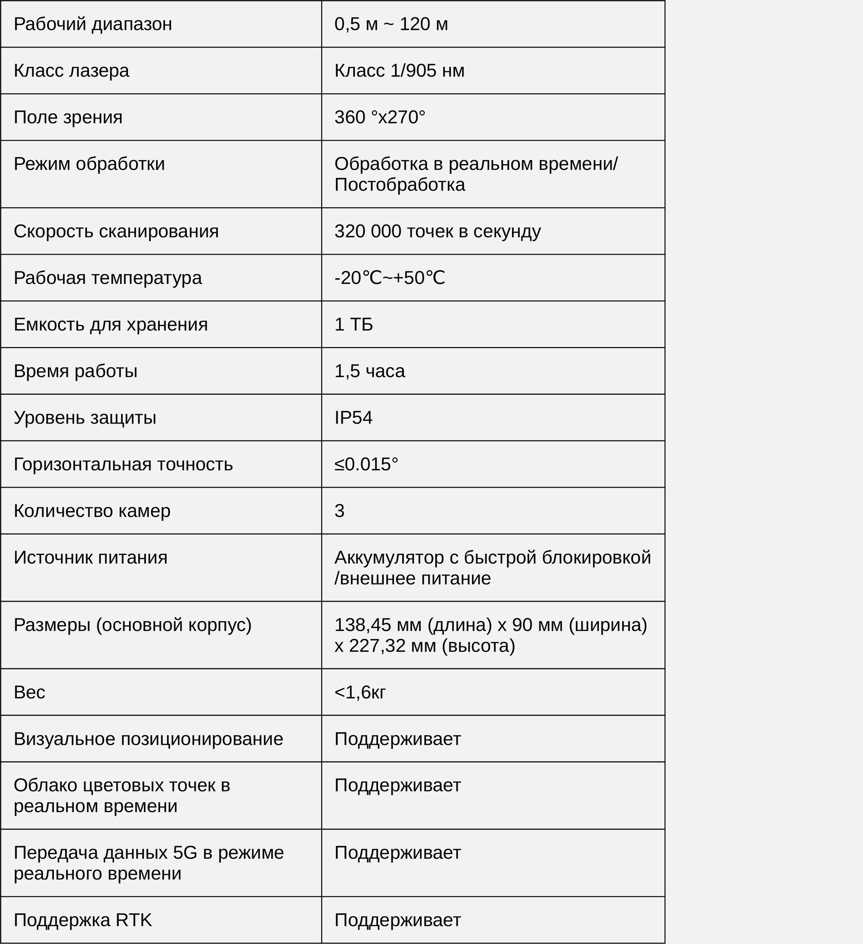 Скорость сканирования: 320,000 точек/сек